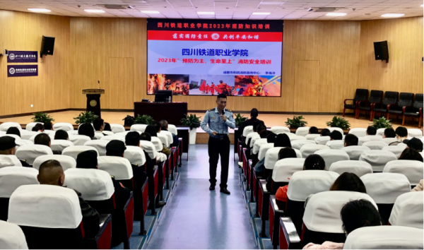 在学术报告厅的消防知识培训中,成都市利民消防宣传中心海洋教官结合近年来现实火灾案例进行分析,从火灾的特性、消防法律法规的讲解、学校消防工作能力建设、火灾的应急处理以及常用消防器材介绍等五个方面讲解消防安全知识,使现场师生切实认识到火灾给社会、家庭和个人带来的严重危害,深刻认识到“消防安全,人人有责”的重要性。