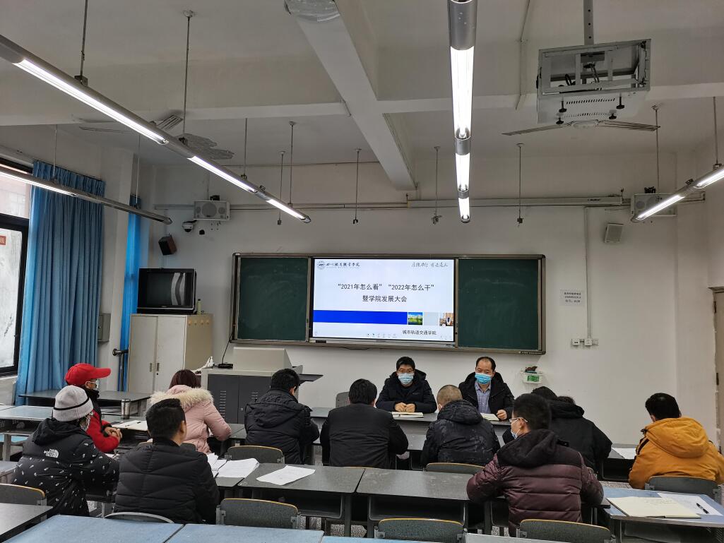 2021年12月7日,城轨交通学院在1311室召开“2021怎么看”“2022怎么干”暨学院发展大会,刘昊君副校长、杨凤院长、王文杰书记及城轨交通学院全体教职工出席会议。
