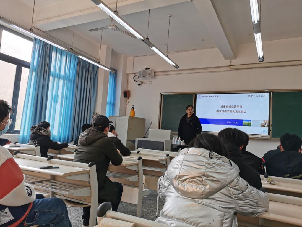 12月20日下午,城市轨道交通学院开展学期班级管理工作总结暨交流会。学院分团委部门干部、各班班长,辅导员赖敏及党总支王文杰书记参加本次会议。