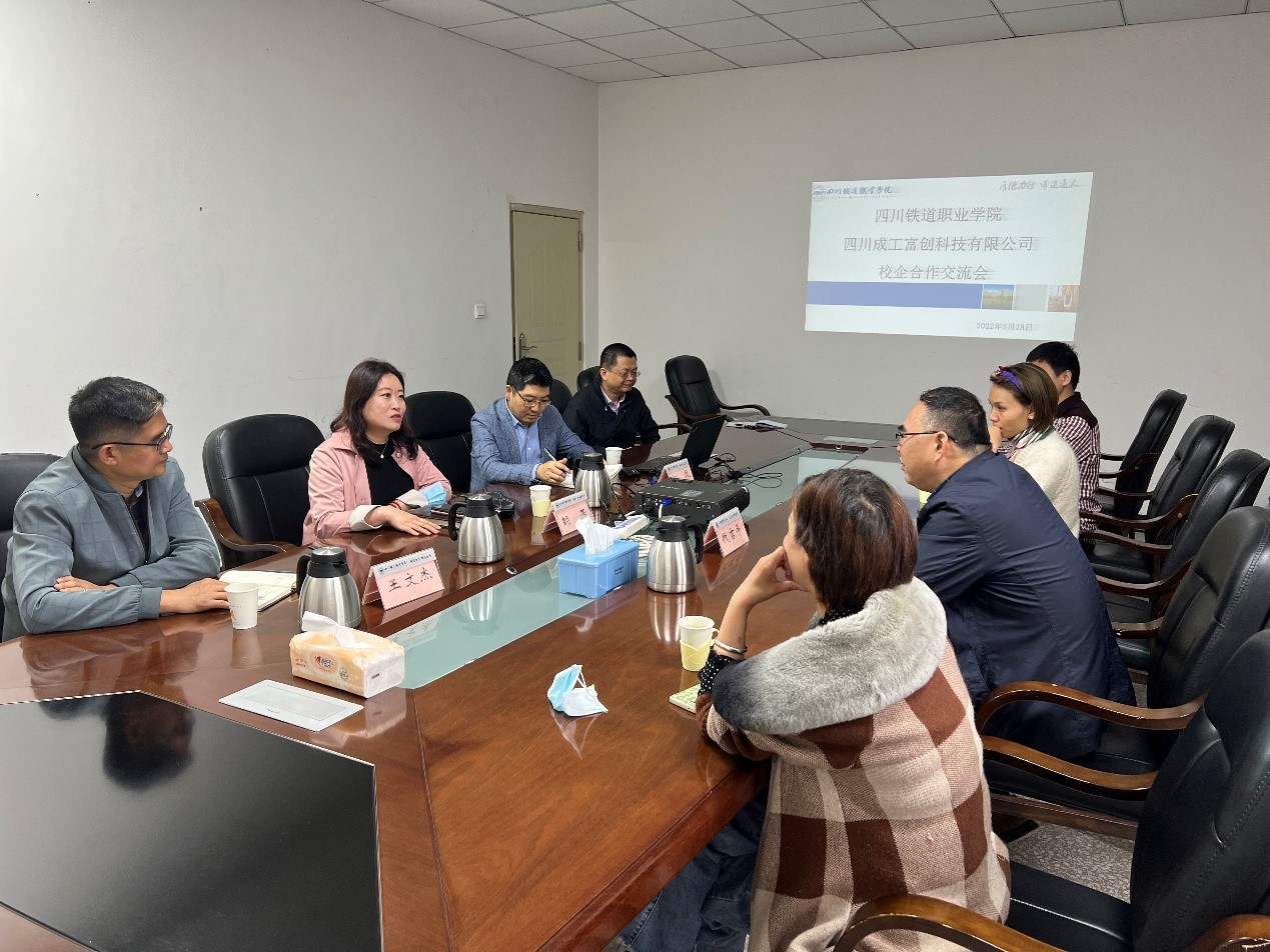 5月18日上午,四川成工富创科技有限公司代吉平总经理一行到校交流,参观了学校铁道综合演练场、城市轨道交通综合实训中心,就研学基地、科普基地、校企合作等进行了座谈。赖芳校长会见了来访嘉宾。