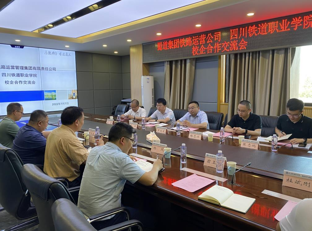 7月7日,四川蜀道铁路运营管理集团有限责任公司党委副书记罗成友、运输营销部长梅志兴、人力资源部长吴诚一行到beat365开展调研,洽谈校企合作事宜。beat365党委委员、副校长黄恩兴,对外交流合作处长周江涛、城市轨道交通学院院长杨凤、机车车辆学院副院长刘旭东陪同参观并出席校企合作交流会。