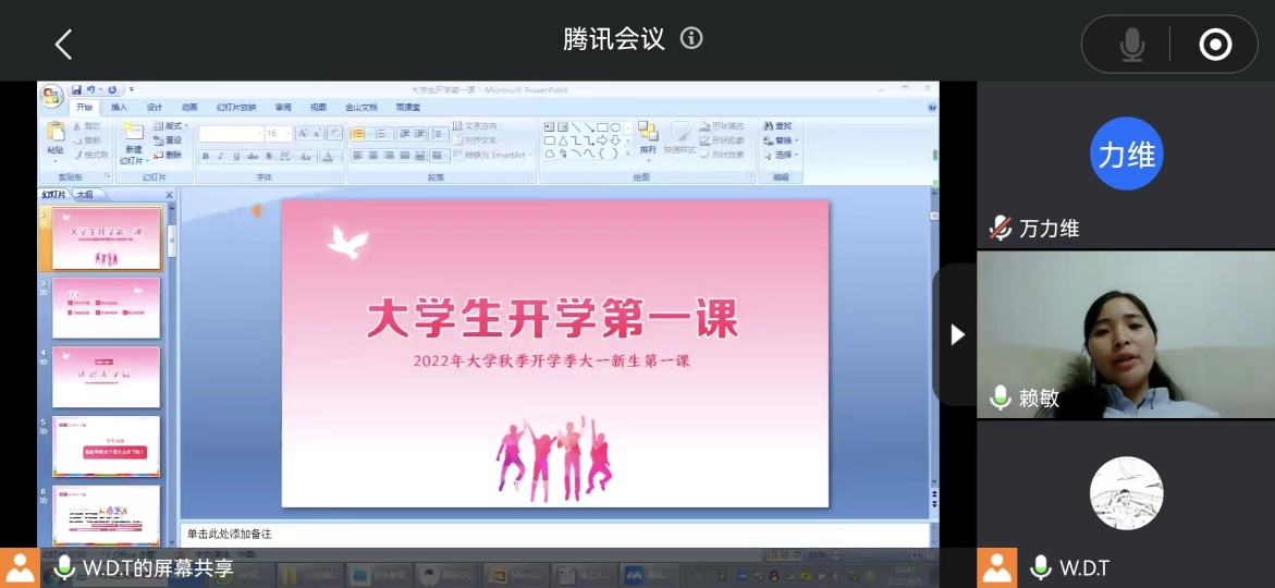 城市轨道交通学院9月9日开展了2022级新生线上开学第一课,辅导员万力维、赖敏老师共同担任主讲。
