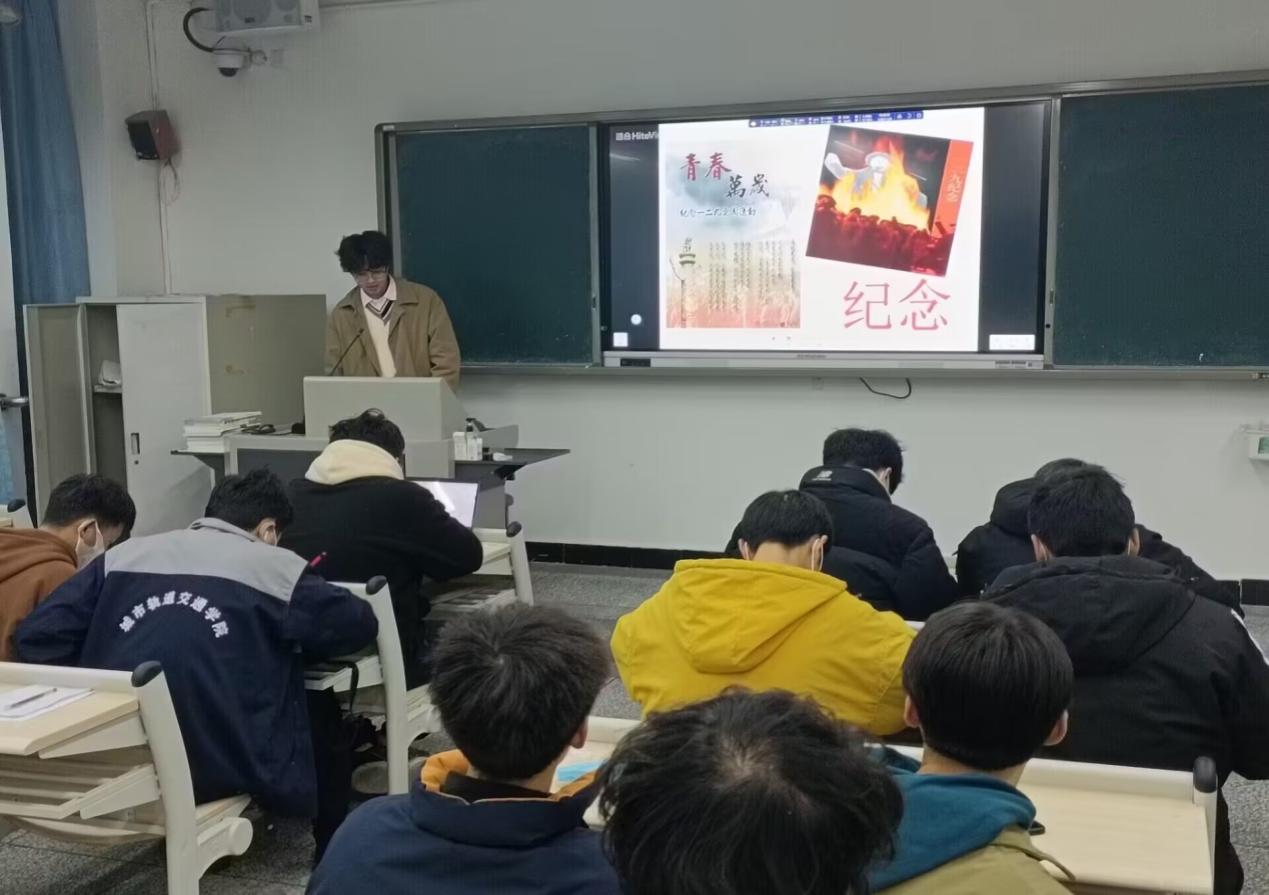 1935年12月9日,北平数千名青年学生涌上街头,高呼抗日口号,声势浩大的一二·九抗日救亡运动就此爆发。12月8日,城市轨道交通学院组织各班级团支部开展“铭记历史使命 践行青春担当”纪念“一二.九”运动87周年主题团日活动。