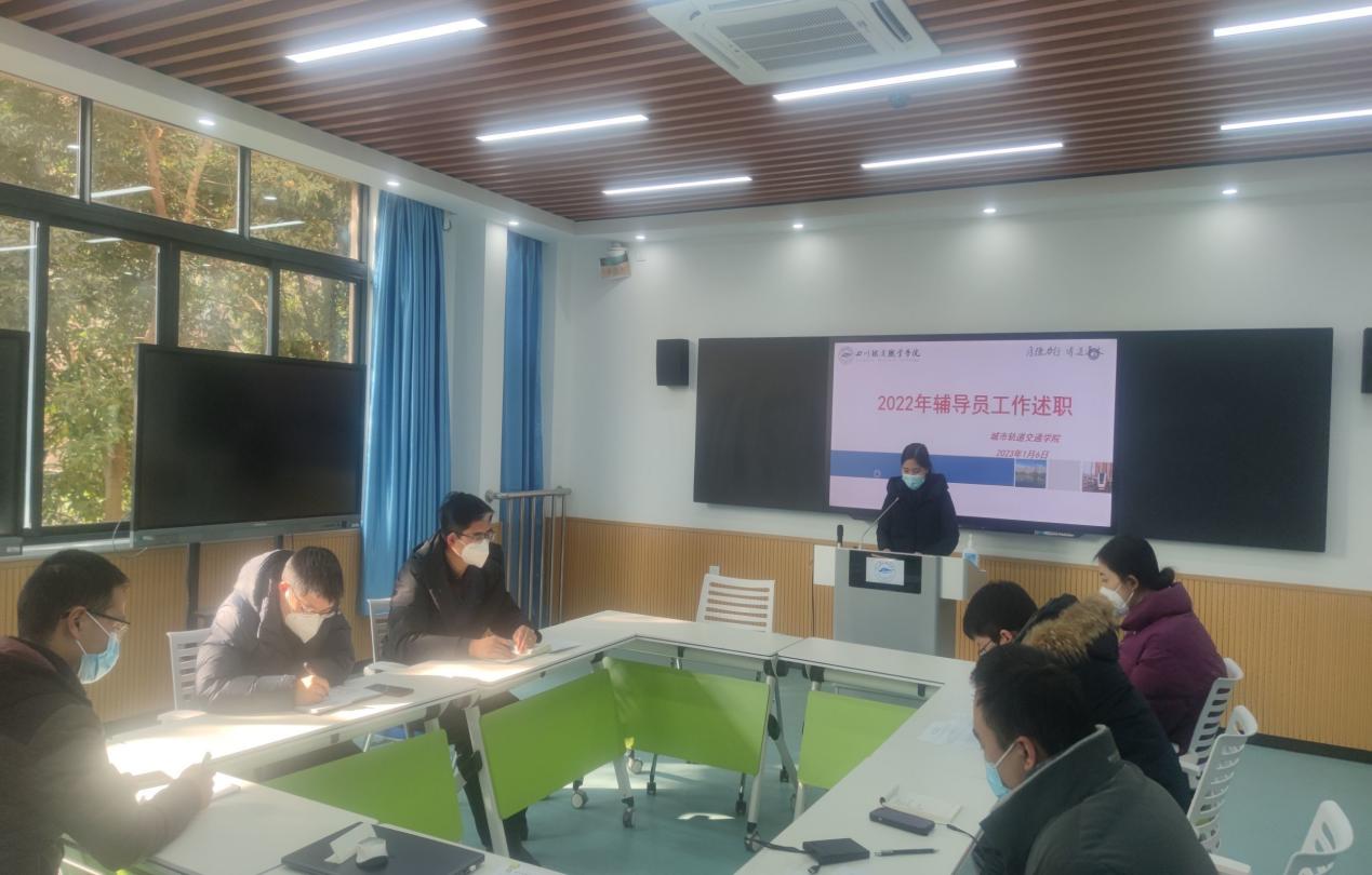 根据《beat365在线唯一官网辅导员考核实施细则》,为进一步加强辅导员队伍建设,2023年1月6日于1207召开城市轨道交通学院2022年度辅导员年度考核述职报告会。会议由城市轨道交通学院党总支书记王文杰主持,学院院长杨凤、学院教研室主任杜亚林、学院办公室主任郭尧鹏、学院全体专职辅导员老师参加。