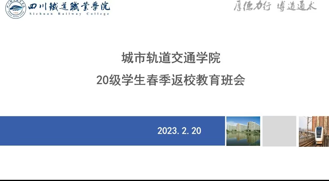 为切实做好学生返校安全教育,保障学生返校安全,筑牢校园安全底板,形成新年学生工作“开卷有益”的新气象,2月20日,城市轨道交通学院各班开展线上返校安全教育主题班会。