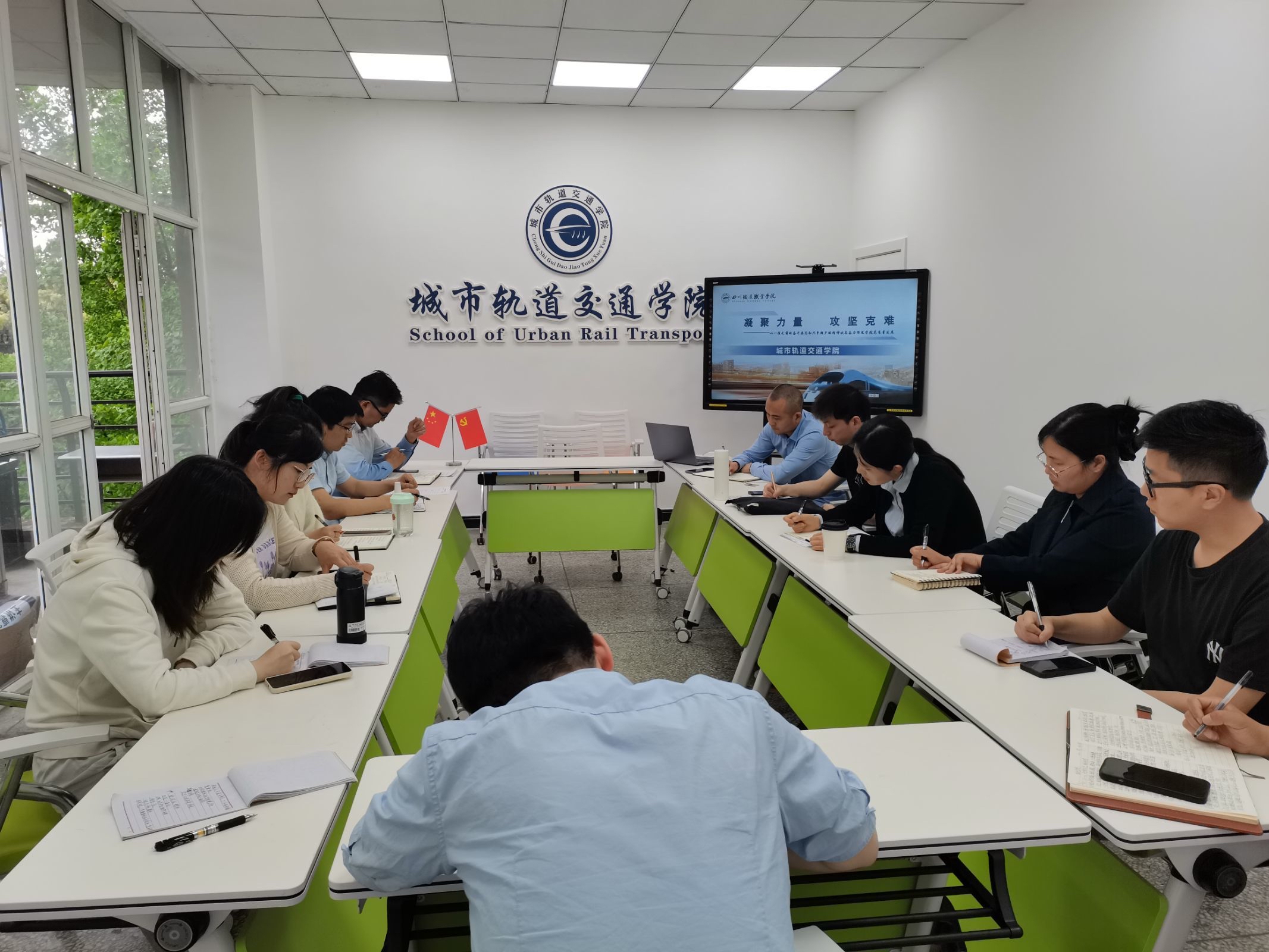 2023年4月20日上午,城市轨道交通学院于一教三楼会议室组织学院全体教职工学习学校第一次党代会精神。学院党总支书记王文杰主持会议。