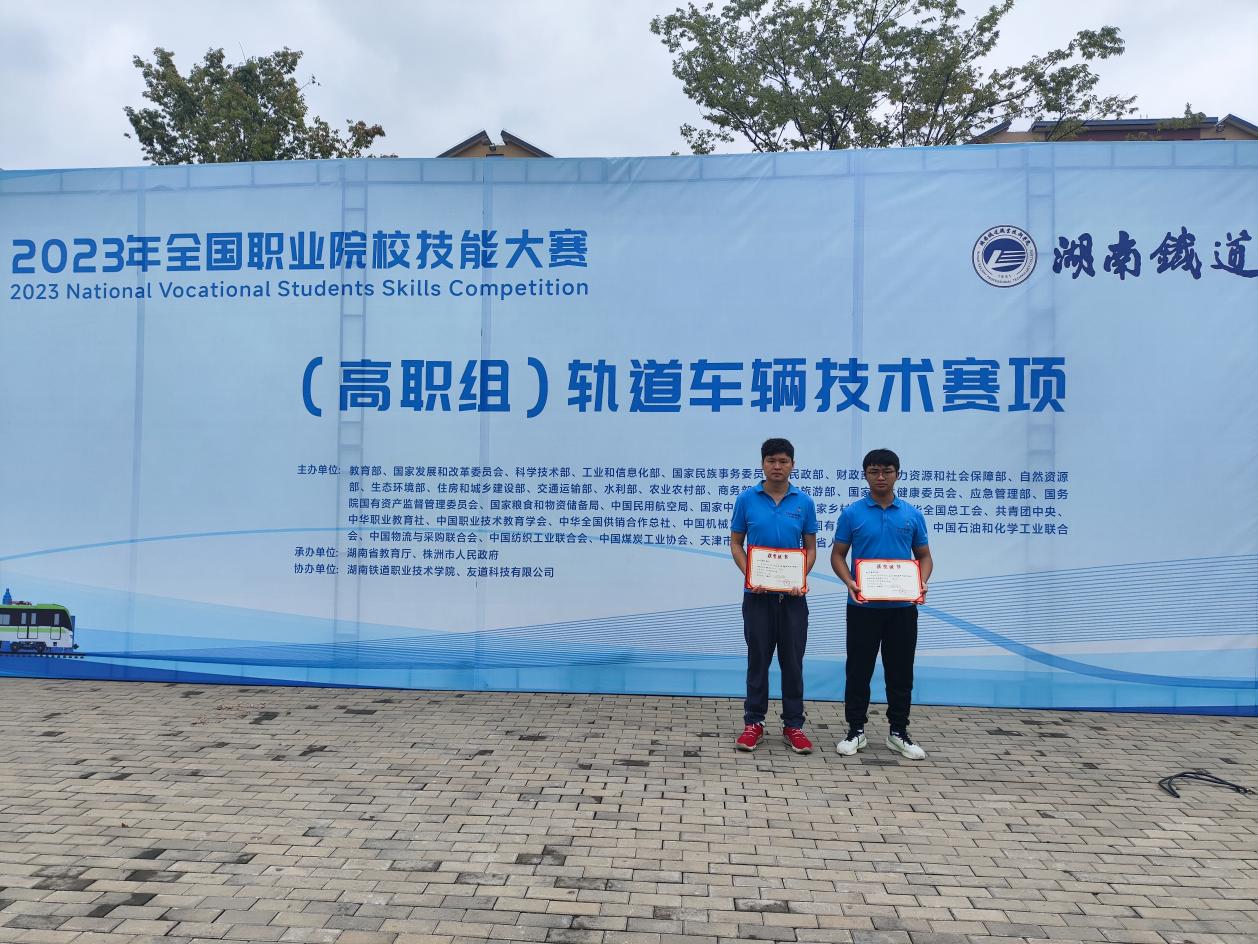 2023年全国职业院校技能大赛(高职组)轨道车辆技术赛项于8月25日—28日在湖南铁道职业技术学院举办,来自全国27个省市自治区的50所高职院校参赛,经过两天的激烈角逐,由beat365城市轨道交通学院教师何劲辉、学生王炎组成的竞赛团队荣获三等奖。