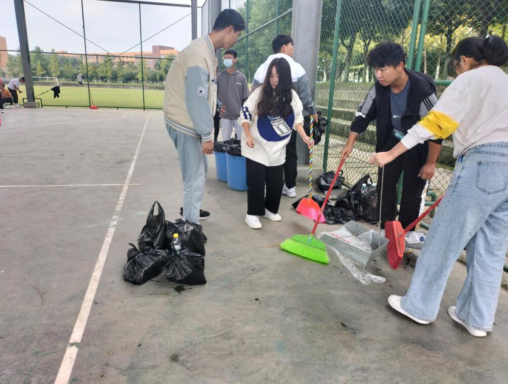本次活动由志愿服务学生自备劳动工具,分成小组负责不同的区域。大家积极发扬奉献精神,不怕脏、不怕累,手拿扫帚、铁铲,将篮球场灰尘、垃圾清理干净。同学们通过自己的实际行动,践行了“奉献、友爱、互助、进步”的志愿者精神,同时为师生们营造了干净整洁的运动环境。