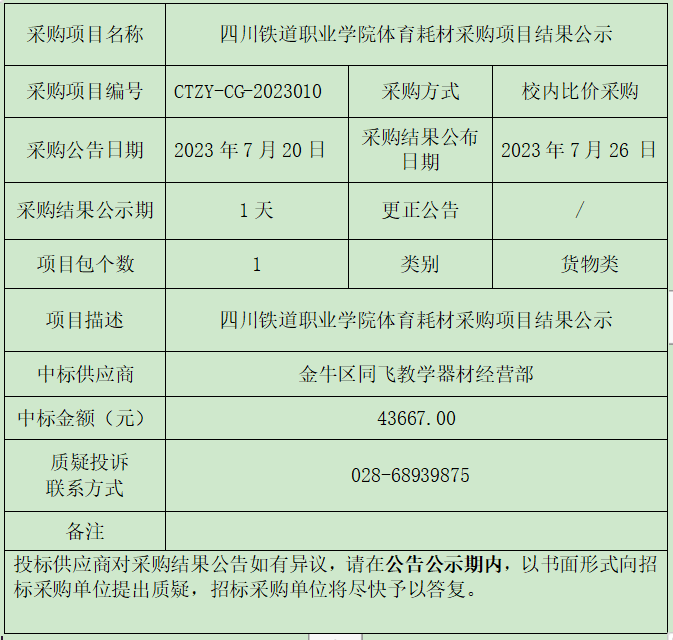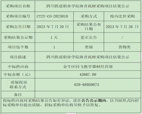 beat365在线唯一官网体育耗材采购项目结果公示