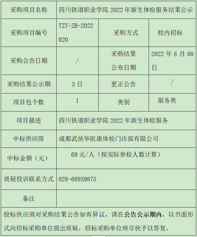 中标(成交)公告