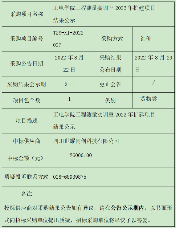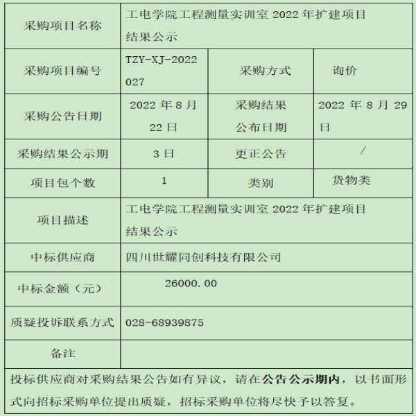 工电学院工程测量实训室2022年扩建项目结果公示