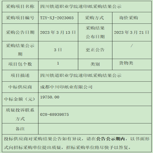 beat365在线唯一官网速印纸采购结果公示