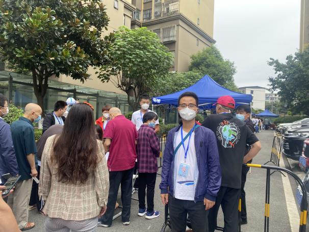 自9月1日成都启动新一轮全员核酸检测采样以来,城市轨道交通学院党总支积极响应学校党委的号召,迅速组织在蓉党员就地转为防疫志愿者,迅速加入社区党员突击队、党员志愿队,积极参与社区核酸检测、秩序维护等服务工作,通过与社区工作者们携手战斗,共同筑牢成都抗疫防线。 昨日三尺讲台循循善诱,今日摇身一变服务抗疫。我院党员教师们通过“蓉城先锋·党员e家”申请成为疫情防控志愿者,并按居住地迅速编入了所在社区(微)网格,深入社区(小区)。主动承担起核酸检测秩序维护、信息录入、宣传政策、扫码查验等服务工作,热情活跃在群众身边,共同守护人民健康和安全。在谈到此次共助成都抗疫防线工作时,党员老师们表示:“我是一名党员,坚守全心全意为人民服务的初心不变,危机时刻,更要挺身而出。” 此时此刻,城市轨道交通学院还有多名党员教师奋战在抗疫前线凝心聚力共克时艰,为取得疫情防控战疫的最终胜利奉献力量。封控不解,党员志愿者不回;疫情不退,城市轨道交通学院党员教师不退!