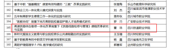 2022年10月31日,四川省教育科学研究院公布2022年度四川省教育科研拟立项课题名单,根据《四川省教育科学研究院关于2022年度四川省教育科研拟立项课题名单的公示》,铁道工电学院董浩老师主持的课题《高速铁路综合维修一体化改革背景下<铁路线路检修与管理>课程改革研究与实践》获批立项。