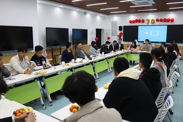 11月13日,在学校70周年校庆之际,中国化学工程集团南方建设投资广西公司党委书记、执行董事王占军校友回到母校,与电信工程学院30余名师生在2302教室进行了座谈。座谈会由学院党总支副书记刘奇主持。