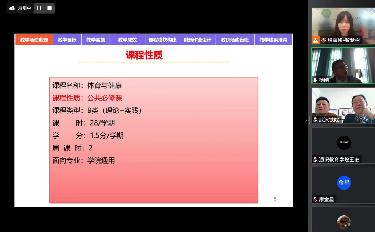 | 校校同步 共建课堂 ——公共教学部体育教研室与武汉铁职院通识教育学院召开“体育与健康”同步课堂线上会议 |