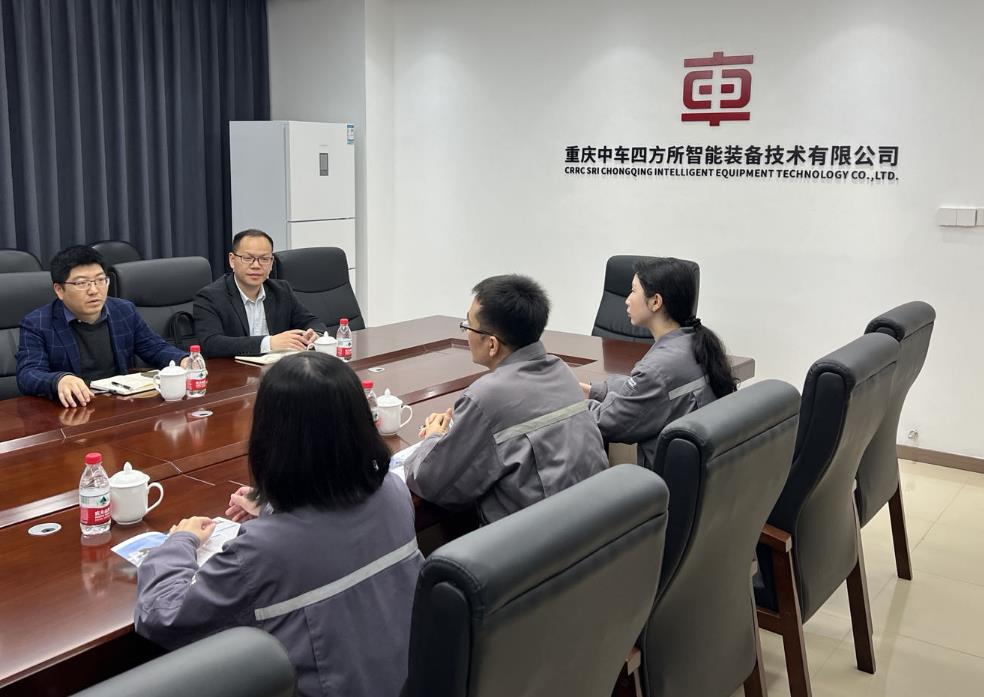 随后,杨凤等来到重庆中车四方所科技有限公司、重庆中车四方所智能装备技术有限公司,深入公司装备制造车间、科研实验室、智能运维试车台、智能运维数字平台考察学习,主要围绕校企资源共享、教学新模式开发、设立校企工作站、建设共享研发中心等方面与公司人力部部长张大威、行政部部长黄于丹等企业领导进行座谈交流。