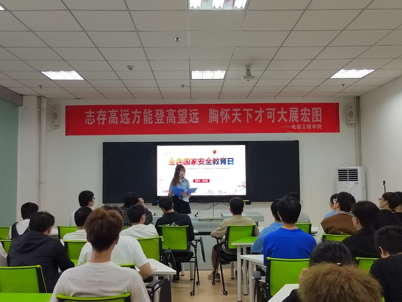 为教育引导广大学生增强国家安全意识,自觉维护国家安全,4月16日晚,电信工程学院学生工作党支部发挥党员先锋模范作用,充分动员入党积极分子,面向全院19个在校班级,组织开展了以“国家安全 共同守护”为主题的“4·15全民国家安全教育日”知识宣讲活动。