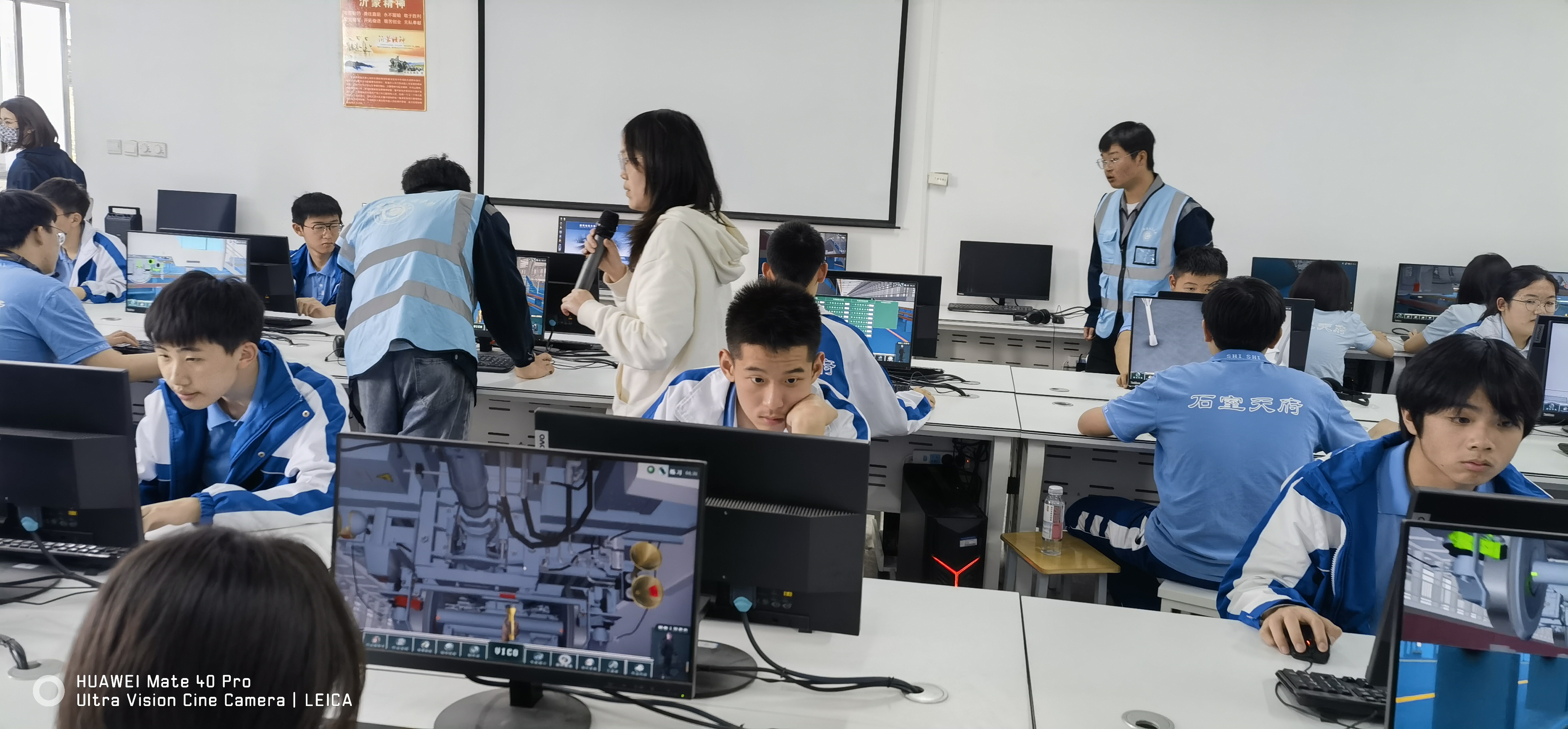 为确保研学活动安全顺利有序开展,学院建了专业的研学服务团队,全程配备优秀带队教师、研学导师和安全员积极跟进,全力做好研学服务工作。在我院城市轨道交通实训中心,来自郫都区红光小学的 360名小学生和石室天府中学的32名高中生化身列车司机、地铁站务员、车辆检修员,在模拟驾驶实训室体验地铁驾驶以及其他岗位工作内容。研学导师针对同学们们好奇的地铁车辆如何到站,如何进行列车控制,如何发车,如何精准停靠站台等问题进行专业解答。在研学指导老师和志愿者的带领下,同学们在真实场景中沉浸式参观轨道交通常用设施设备,充分了解城市轨道车辆安全运行的标准化作业全过程、体验了城市轨道交通运营全部署,对轨道交通行业的各个岗位有了一个基本认知。