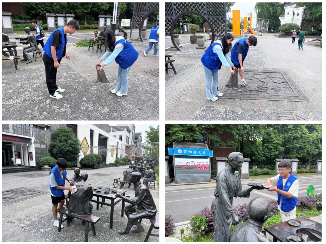 五四的青春号角还在耳边萦绕,青春的梦想还在远方,但始终根植于脚下的土壤。安德作为中国川菜文化城,具有丰富的川菜文化印记。本次活动以安德川菜文化体验街为中心,将安德步行街道上的雕像、街面作为清洁目标。活动过程中,同学们自觉分配任务,撸起袖子,不怕脏,不怕累,发扬吃苦耐劳的劳动精神,圆满完成工作任务。同学们在亲历劳动的过程中接受锻炼,磨炼意志、强化责任。