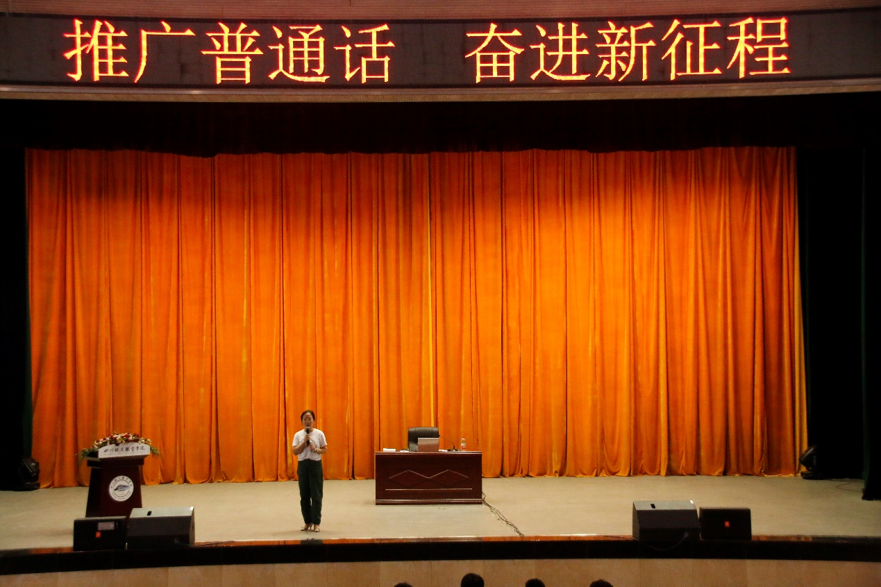 9月18日下午,公共教学部在大礼堂举办第26届推广普通话宣传周专题讲座。本次专题讲座特邀国家级普通话水平测试员、机车车辆学院党总支书记颜静主讲,公共教学部语文教研室全体教师和各二级学院师生代表到场聆听。 颜静首先以生动的视频切入,唤起大家对生活中语言文字运用的思考和讨论;接着进入主题,一是介绍普通话的发展和立法过程,让大家对普通话在增进文化认同方面的作用有了深刻认识;二是解读了普通话测试中的考点变化,鼓励同学们细心准备,认真备考;三是通过四川方言与普通话之间的对比,让同学们在笑声中认识到了生活中正确运用普通话的重要性;四是鼓励大家争做推广普通话的践行者和宣传员。 本次推广普通话宣传周专题讲座的成功举办,帮助师生们进一步了解了普通话相关知识,提升了师生写好规范字、说好普通话的自觉性和主动性,为推动新时代语言文字事业高质量发展起到了较好的促进作用。 撰稿:李博 审稿:翁静 |