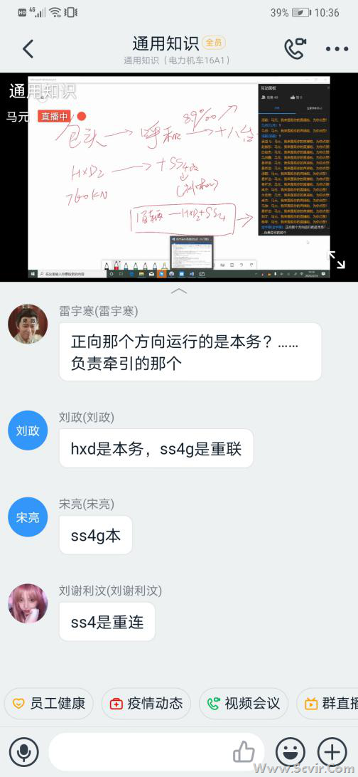 马元老师通过钉钉向机车16A1班级的学生进行《机车乘务员通用知识》授课