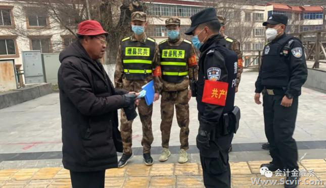 (陈冰立同学在疫情期间挨家挨户走访) 会计18T1班的袁德睿同学在阿坝藏族羌族自治州理县当民兵志愿者。他的任务是应急巡逻,在宣传防控疫情的同时监督并管理县城范围内防控意识薄弱、未带口罩、聚众的人员,对其进行劝说,并上报给相关部门。对于这次参与志愿服务,他的感言简单而朴实:“抗击疫情嘛,能出一份力是一份嘛!”