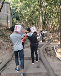 此次山火性质特殊,无法使用交通工具接近,需要用人力从山下将水、大米等基础生活物资搬运到消防一线。3月31日,从清晨6点开始,5个多小时内,三位同学连续往返于几公里的山路之间搬运物资,体力消耗极大。他们在搬运物资的途中曾出现过体力不支、头晕呕吐的现象,但想起山上的消防战士们正在用生命捍卫家园,替我们负重前行,他们相互鼓励,继续前进,最终以最快的速度将物资送到了指定位置。
