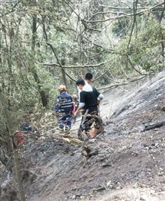 当日下午2点,匆忙吃过午饭,马启哲、魏志强、杨洋等人随救援部队出发,前往崎岖的山顶检查是否产生新的火点。经3小时的紧密排查,共找到7处复燃迹象的火点,同学们第一时间配合消防队员及时处理着火点,减小了山火复燃的可能。