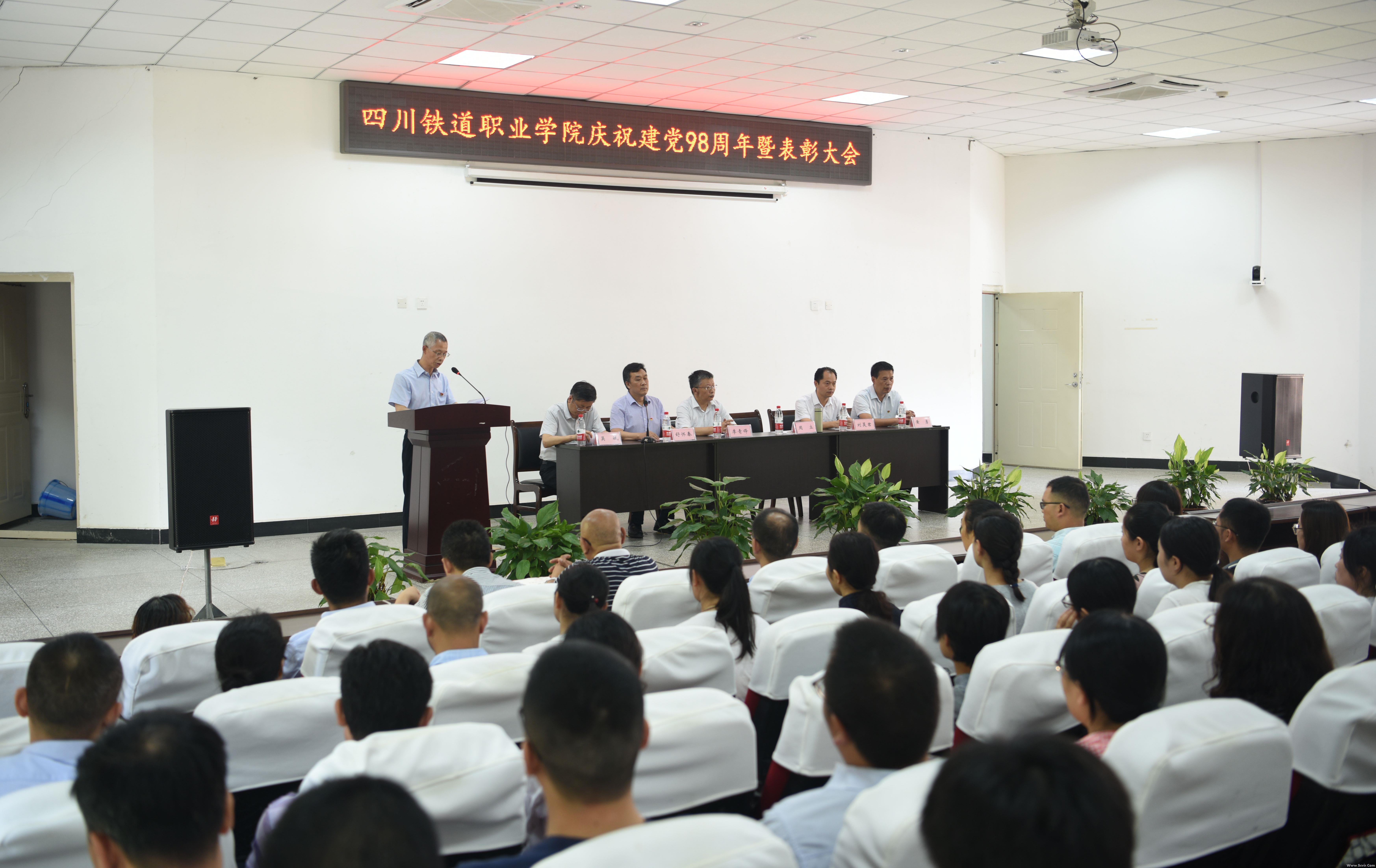 7月1日,beat365在线唯一官网党委隆重召开中国共产党成立98周年庆祝大会。大会在成都校区设主会场,内江校区设分会场,学院党委成员和全校在职职工党员、在校学生党员、部门负责人参加,党委副书记舒怀春同志主持会议。