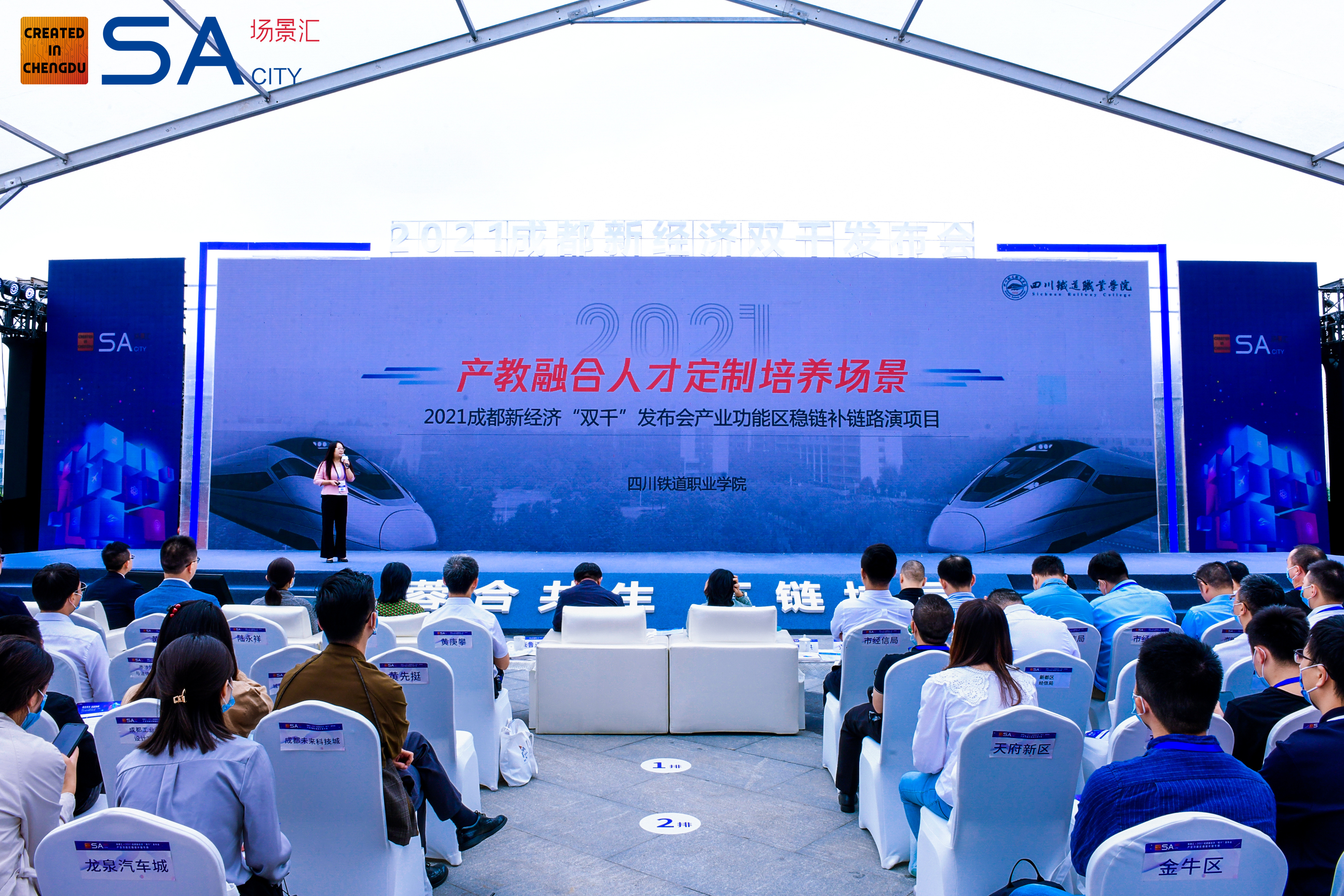 8月26日,以“蓉合共生 五链协同”为主题的2021成都新经济“双千”发布会产业功能区稳链补链专场在成都市新都区城市会客厅拉开帷幕。学院作为区域产业链和人才链的代表单位以及发布会的协办单位全程参与了此次活动。 参与过程中,学院紧扣国务院对深化产教融合的系列政策,积极响应四川省抢抓轨道交通产业高质量发展重大机遇,与主办单位成都市经济和信息化局以及执行协办单位四川传媒集团、四川轨道交通协会、成都市轨道交通生态圈联盟,联合形成了政、行、企、校四维协同推进的工作格局。通过参与前期发布会方案讨论、主题确定、路演项目筹备等工作,在社会和行业企业中为学院做出了积极的宣传。 发布会现场,教务处长陈风玲同志代表学院做了“产教融合人才定制培养场景”的主旨演讲,发布了学院产教融合的三大服务场景,分别包括人才培养服务场景、员工培训务场景和创新协同务场景。每个场景都充分围绕《国务院办公厅关于深化产教融合的若干意见》中对产教融合描绘的发展蓝图,以促进教育链、人才链与产业链、创新链有机衔接,推进人力资源供给侧要主动匹配产业需求侧的结构性改革为目标,将产教融合将能激发的效益结合进地方产业发展规划和经济转型升级的各环节。项目内容从企业人力资源的痛点问题切入提出了校企合作共建多模式并举的人才培养模式、校企协同共建开放性在线培训资源的方式以及校企共同探索资源整合激发最大效益的创新路径。 通过此次发布会,学院有力地宣传了国家和地方政府关于产教融合提出的创新性指导意见。学院深信,产教融合是未来企业高质量发展的必由之路,也只有产教融合才能培育出更加适应于时代发展需要、企业市场需要的高层次复合型应用人才。 图1 2021成都新经济“双千”发布会现场 图2 会上学院代表做“产教融合人才定制培养场景”的演讲 |