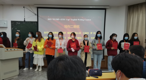 蒋林杞(正中间)荣获写作二等奖