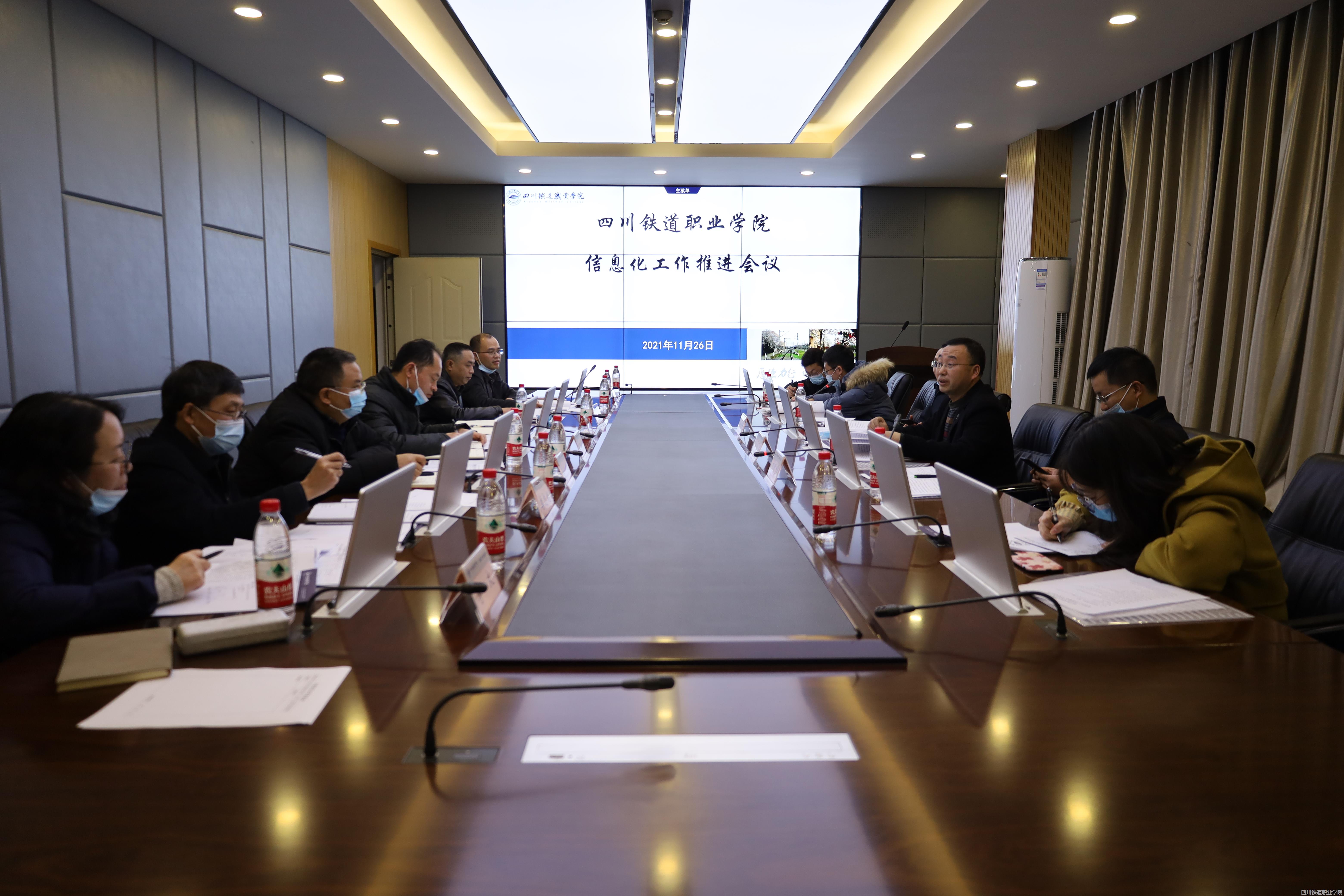 2021年11月26日,学校网信办在第五会议室召开信息化工作推进会。四川交通职业技术学院、四川水利职业技术学院和成都农业科技职业学院信息化专家到校指导。副校长、网信办主任刘昊君出席会议并讲话。