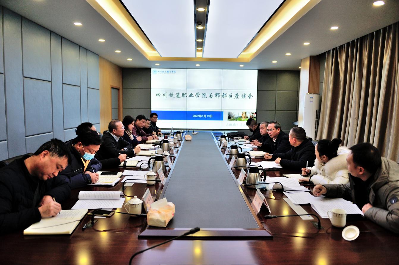 1月13日上午,郫都区委常委、统战部部长赵武斌一行来校调研。赵武斌一行首先查看了学校常态化疫情防控措施落实情况,参观了学校铁道综合实训基地、城市轨道交通综合实训中心,随后在办公楼第五会议室召开了座谈会。