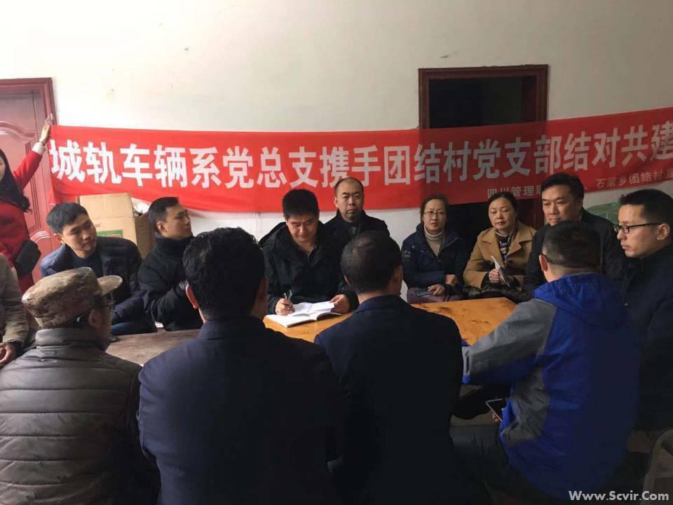 经城轨车辆系党总支、学生与安全保卫处党支部、教育党支部与团结村党支部、石丈空村党支部、金华村党支部商议,2019年陆续开展党支部结对联建活动。如:党员到帮扶村与该支部党员共同开展组织生活,相互通报工作情况,探讨党建工作方法、措施、载体和形式,交流党建经验。相互交流学习贯彻党的路线方针政策的心得体会,提高政策水平。大力宣传党和国家教育政策,帮扶村支部必要的一些物质设备,加强其活动阵地建设,共同完善发挥基层党组织作用的物质载体。利用农民夜校平台,向广大农民群众全面宣传党的方针政策,开展脱贫致富技能培训,培育和践行社会主义核心价值观,大力倡导健康文明新风尚,推动农民素质教育工作常态化和制度化。开展形式多样、长短结合的以购代捐方案,为村民增收致富,为师生提供绿色山珍。