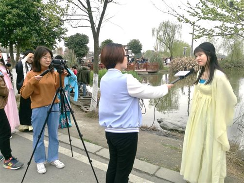 集体合影 四川传媒大学采访我院学生 |