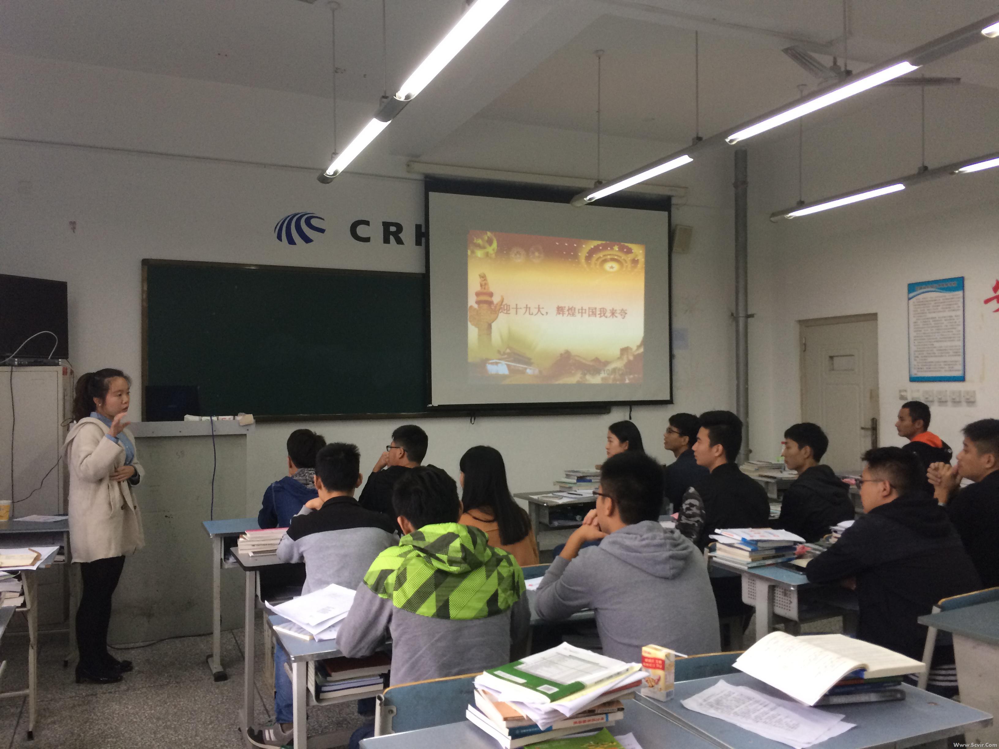 为迎接党的十九大胜利召开,机车车辆系党总支学生工作支部组织入党积极分子开展了两次集体学习。 在10月12日的学习活动中,辅导员余雅莉老师、团总支书记刘静雅老师组织入党积极分子收看视频,跟随央视纪录片《辉煌中国》的脚步再一次感受十八大以来中国在各领域取得的伟大成就。随后,同学们进行了“辉煌中国我来夸”活动,谈及五年来身边发生的变化,畅所欲言,气氛活跃。从航天科技到公交车站,无不体现出党和国家为人民的幸福生活所做出的努力,从细微处体现出中国人民的获得感、安全感、幸福感和自豪感。
