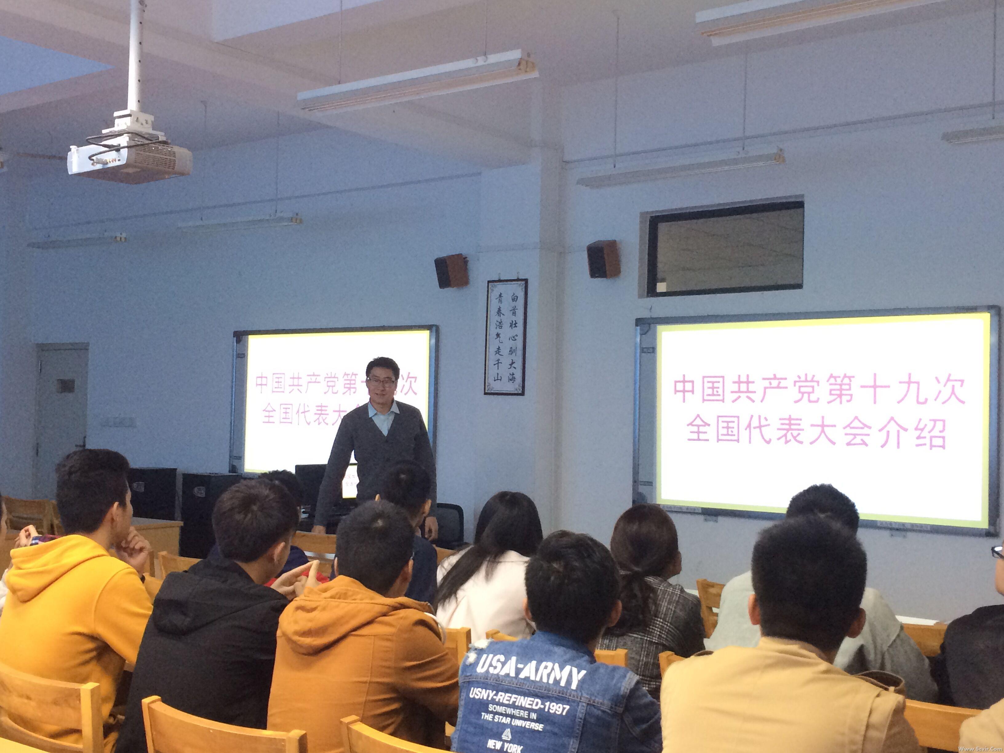 在10月16日的学习活动中,毛永文老师宣讲了十九大的相关知识,讲解了十九大的前期准备工作、全国代表的构成、十九大的主要任务等,重新梳理了“五位一体”、“四个全面”以及“两个一百年”等关键词。入党积极分子充分认识到了十九大召开的重要意义,更加坚定理想信念,砥砺思想品格,更加深刻地理解中国共产党的领导是民族复兴的根基。
