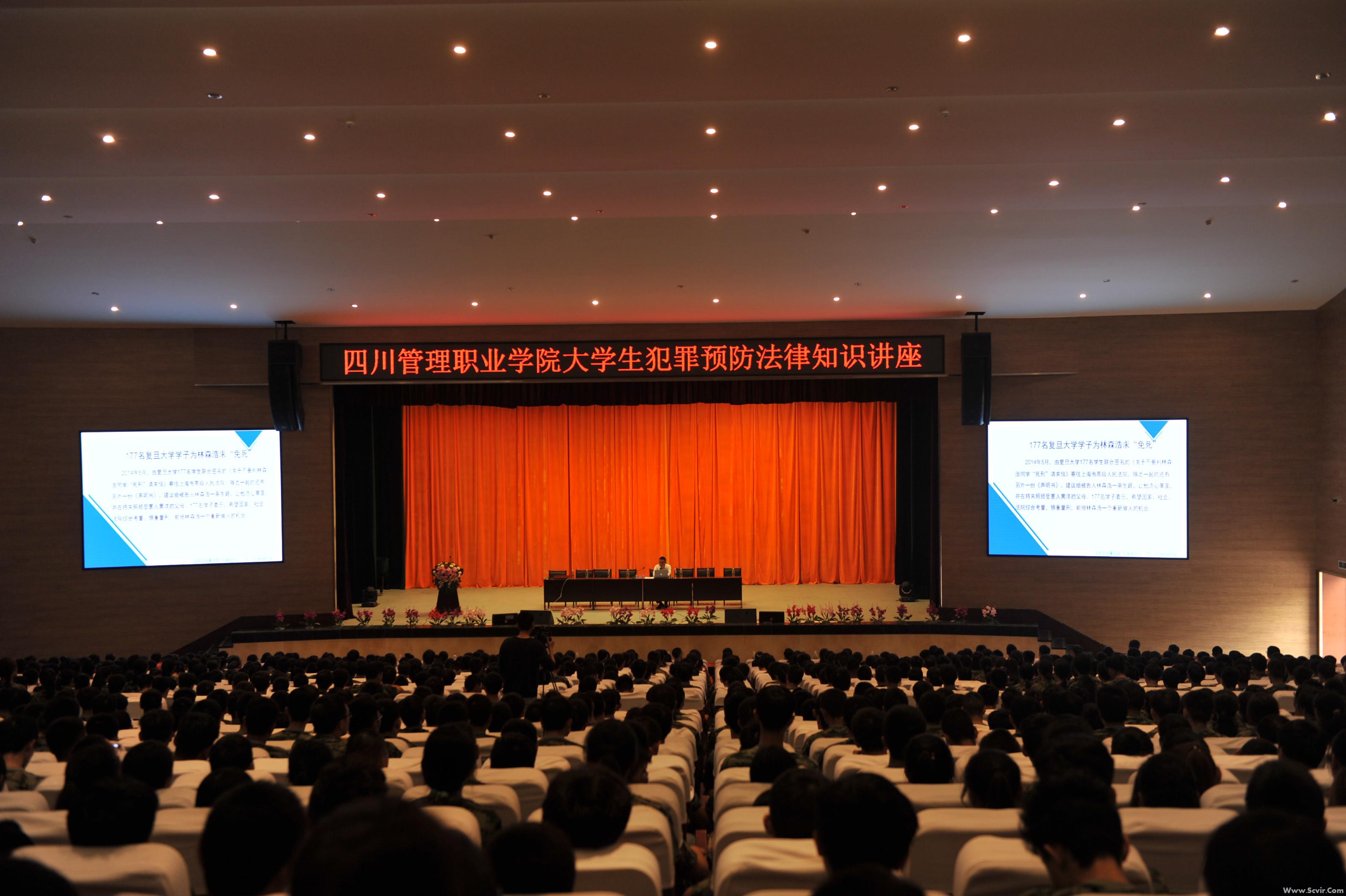为提高学生法律意识、维权意识、自我防范意识,争做知法、懂法、守法的好公民,9月23日上午10点学院在大礼堂举办了法制进校园专题讲座。法制网特约评论员、四川省律师代表、成都市优秀律师、四川高扬律师事务所高级合伙人、常务副主任张洪应邀为我院1300余名师生主讲“大学生犯罪预防法律知识”专题讲座。学院副院长易刚同志、成都市郫都区司法局、安德司法所、安德派出所相关同志参加了讲座。