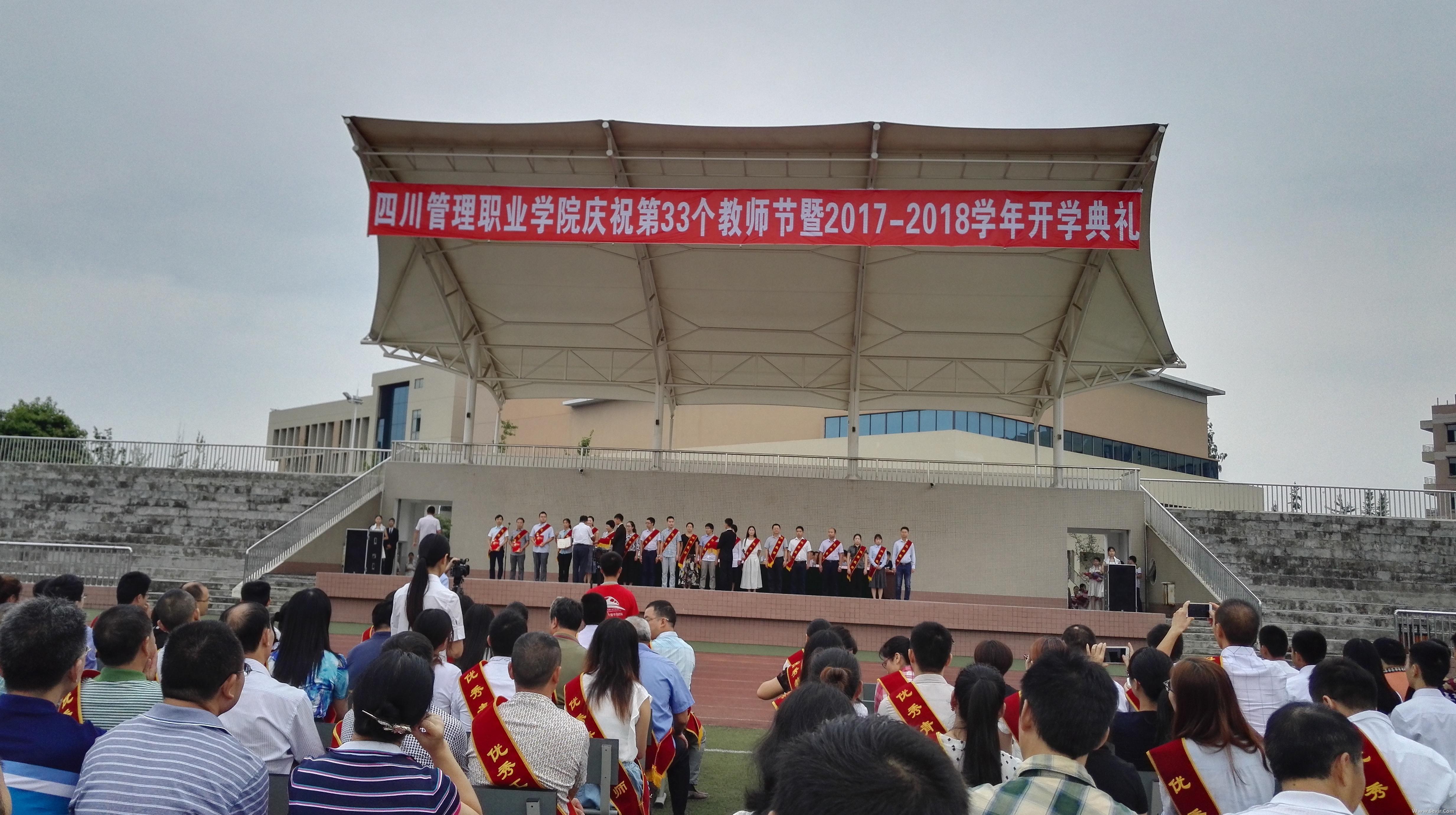 9月8日,我院师生齐聚运动场,隆重举行庆祝第33个教师节暨2017-2018学年开学典礼。院领导李青锋、周立、舒怀春、吴斌、易刚、黄勇出席,大会由副院长吴斌主持。 上午9点,大会在庄严的国歌声中开幕。院长周立以“迎接党的十九大,做好学生引路人”为题做了讲话,勉励教师按习总书记的要求,做学生锤炼品格、学习知识、创新思维、奉献祖国的引路人;号召教职工以黄大年同志为榜样,学习他心有大我、至诚报国的爱国情怀,教书育人、敢为人先的敬业精神,淡泊名利、甘于奉献的高尚情操,奋力拼搏,努力成为服务地方经济发展的栋梁之才。周立院长语重心长地给全校学生讲解了人文底蕴、科学精神,号召同学们学会学习、健康生活,要有责任担当,要注重实践创新,勉励同学们在知识、技能和素质上全面发展,不断进步。 教师代表、电气工程系唐玫的发言表达了对教师岗位的理解和对教书育人事业不懈的坚持和追求。学生代表、供用电技术14A3班陈丁琦代表同学们表达了对老师的衷心感谢和对大学生活的珍惜。铁道机车17T3班肖可同学代表全体新生,表达了要在学院好好学习,将来成为行业能手的决心。 大会表彰了学院2016-2017学年优秀教师、优秀教育工作者、优秀青年教师、优秀班主任、优秀辅导员、优秀工勤服务人员等先进个人和优秀学生代表。 为弘扬教育工作者的自豪感,不断增强教职工的归属感和认同感,鼓励青年教职工学习老教职工们立德树人、淡泊名利、甘于奉献的崇高精神,甘守三尺讲台,终身从事教育工作,今年beat365首次设置了“育人贡献奖”。院领导向从事教育工作满30年以上的同志颁发了育人贡献奖奖杯和荣誉证书,号召全校教职工要坚持教书和育人相统一、坚持言传和身教相统一、坚持潜心问道和关注社会相统一、坚持学术自由和学术规范相统一,为学校的建设和发展、办人民满意的教育做出自己的贡献。