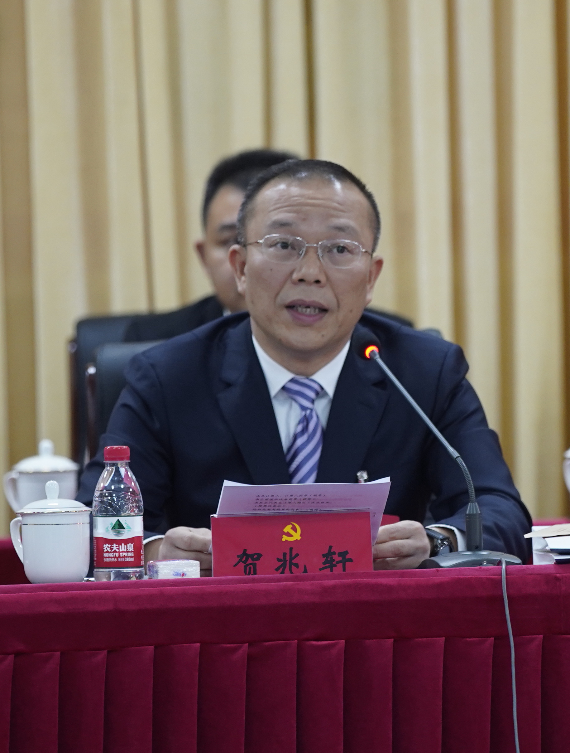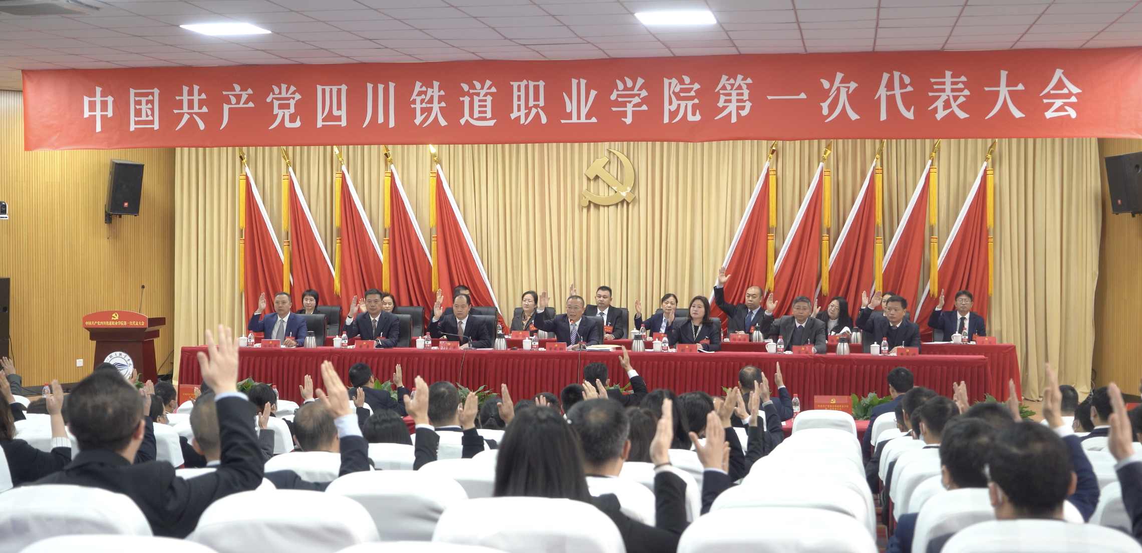 贺兆轩强调,党代会报告提出了未来五年学校事业发展的总基调、总思路、总牵引、总抓手以及新时代新征程的中心任务、总体战略和主要目标,阐述了“固本培元”“专业培优”“人才拓优”“融合创新”“治理赋能”“文化提升”“资源保障”“平安校园”以及党的建设等八项工程九大方面的主要任务,是学校未来五年甚至更长一段时期发展的任务书、路线图。要把学习贯彻党的二十大精神、省第十二次党代会精神和贯彻落实学校第一次党代会精神结合起来,作为当前和今后一个时期的重要政治任务。 贺兆轩强调,在新征程上,我们要做到“三个必须”:一是必须坚定不移加强党对学校工作的全面领导,以高质量党建引领学校事业高质量发展;二是必须坚持把思想和行动统一到党代会决策部署上来,以拼搏奋斗、苦干实干汇聚起实现川铁梦想的强大力量;三是必须牢牢把握团结奋斗的时代要求,以团结奋斗共谋发展新篇、共创美好未来。 贺兆轩要求,各位代表要在深学细悟、践行落实上争当表率、走在前列。新当选的党委委员、纪委委员,要倍加珍惜全体教职工的信任和组织的重托,恪尽职守、担当作为,不负党和人民赋予的使命和荣光。各级党组织要以高度的政治自觉传达好、学习好、落实好大会精神,把思想和行动统一到大会精神上来,把学校党代会决策部署转化为推动学校事业发展的强大动力。各单位、各部门要对照党代会确立的目标任务,逐一列出清单、制定方案、明确责任,以踏石留印、抓铁有痕的决心和毅力真抓实干。