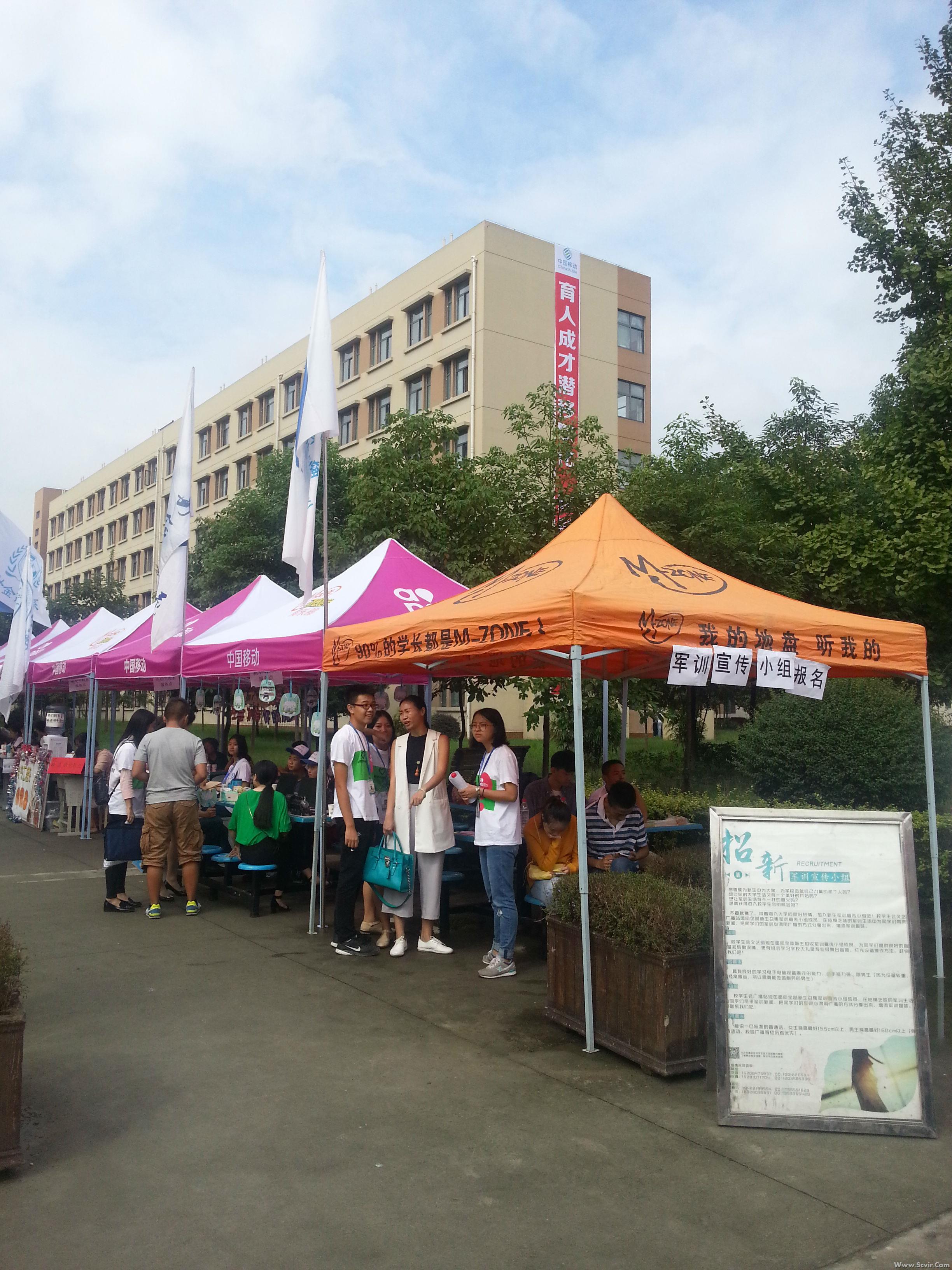 在报到现场外,整齐排列着各系迎接新生的宣传海报栏。各系团总支学生会也都设有服务招新点,学生会的学长学姐们在这里与新生互动交流,让他们了解所学专业,了解大学生活。