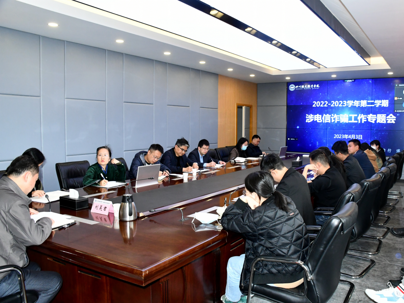 刘昊君指出,各部门要深刻认识当前电信诈骗的严重性、危害性和防范电信诈骗犯罪工作的重要性、紧迫性,切实把防电信诈骗工作作为平安校园建设的一项重要工作来抓。他要求,全体师生要认真学习《反电信诈骗法》等相关法律法规和文件精神,全面提高“反诈”意识。各二级学院和相关部门要持续开展涉电信诈骗主题教育活动,创新教育形式、注重教育方法和成效,签订承诺书,通过主题讲座、班会、推送防诈骗知识、发放宣传资料等形式,积极宣传防骗知识,做到防诈知识全覆盖、防诈宣传无死角;要组织全体学生安装并注册“国家反诈中心”APP、“蓉城反诈卫士”微信小程序,利用科学手段降低被骗风险;要畅通信息反馈渠道,加强家校联动,及时发现问题、解决问题,切实做好防范电信诈骗工作。