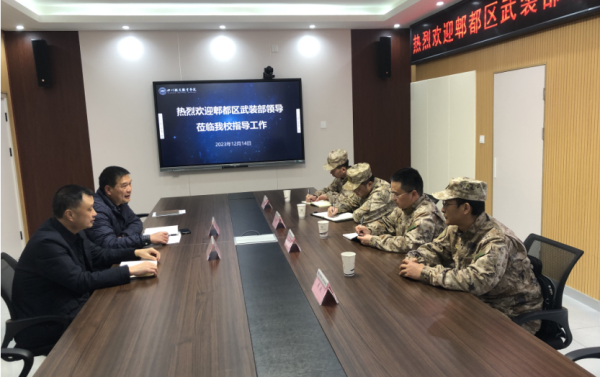 2023年12月14日,郫都区武装部长李舸、政委宋克建一行4人莅临beat365调研指导征兵工作。副校长黄勇会见了李舸一行并主持召开了交流座谈会。