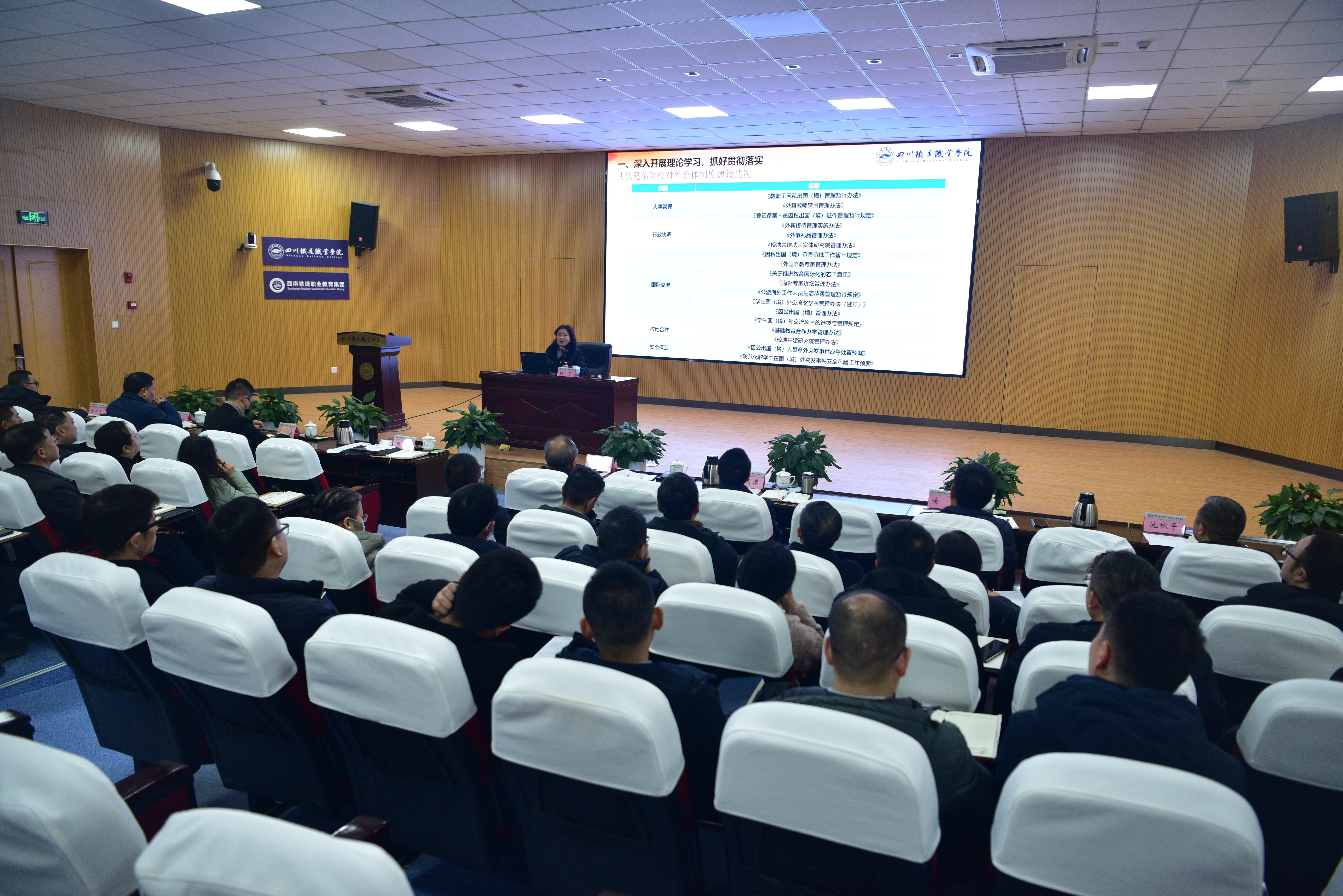学校领导、全体中层干部和组织员参加会议,内江校区管委会通过视频参会。