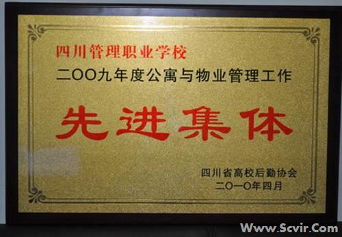 2010年4月7日至9日,四川省高校后勤协会公寓与物业管理专业委员会2009年年会在成都召开,四川管理职业学院被授予“二OO九年四川省高校后勤协会公寓与物业管理工作先进集体”荣誉称号,并受到了教育厅的表彰。能够获得这项荣誉,是与学院领导的高度重视和各职能部门的积极支持配合分不开的,是所有工作人员辛勤工作的成果。