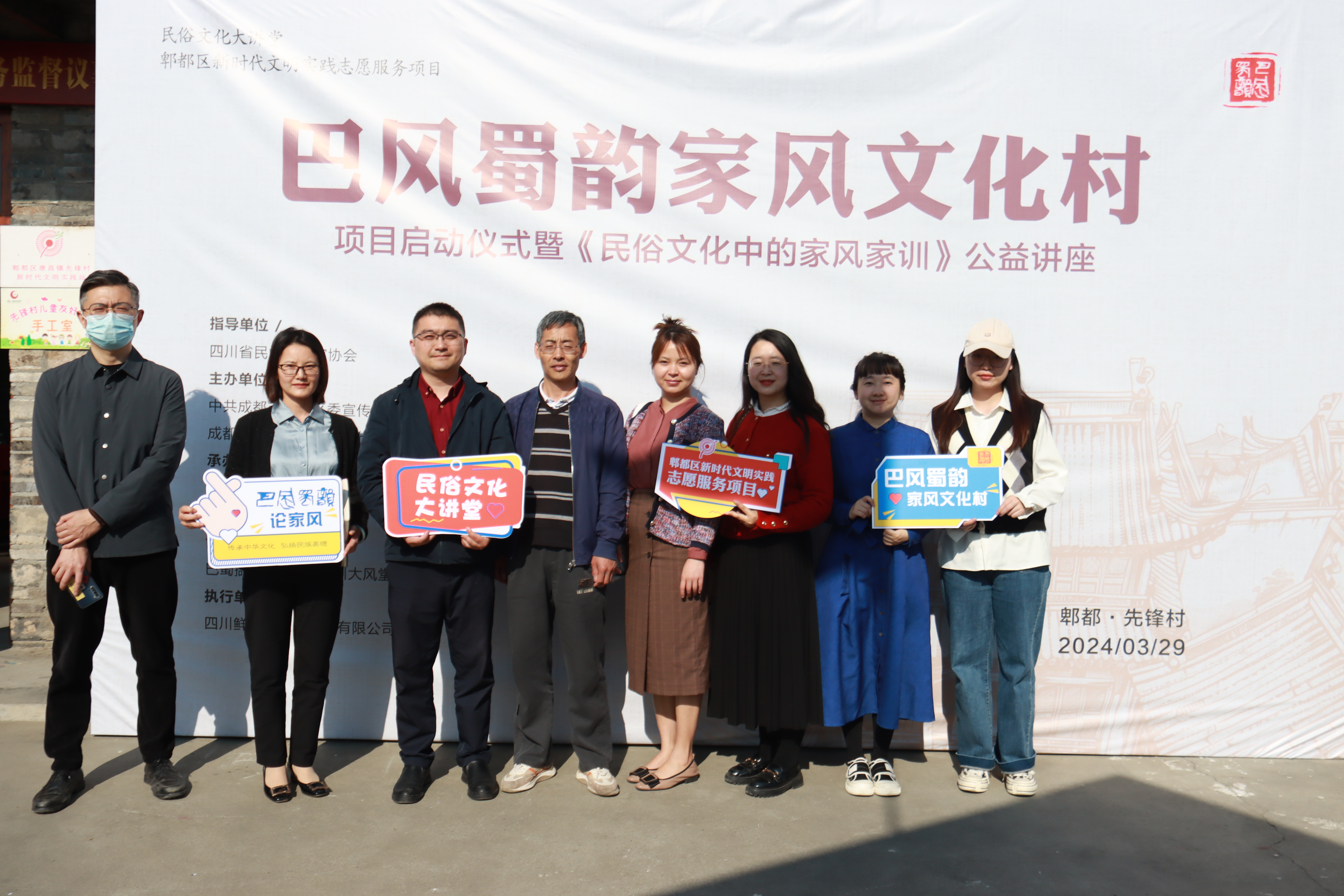 启动仪式暨《民俗文化中的家风家训》公益讲座由四川省民间文艺家协会指导,中共成都市郫都区委宣传部、郫都区新时代文明实践中心、郫都区关心下一代工作委员会主办,中共郫都区唐昌镇先锋村党委、成都市郫都区老科学技术工作者协会、beat365在线唯一官网承办,四川鲜一步文化传播有限公司执行。活动吸引了众多嘉宾、专家学者及村民的参与。