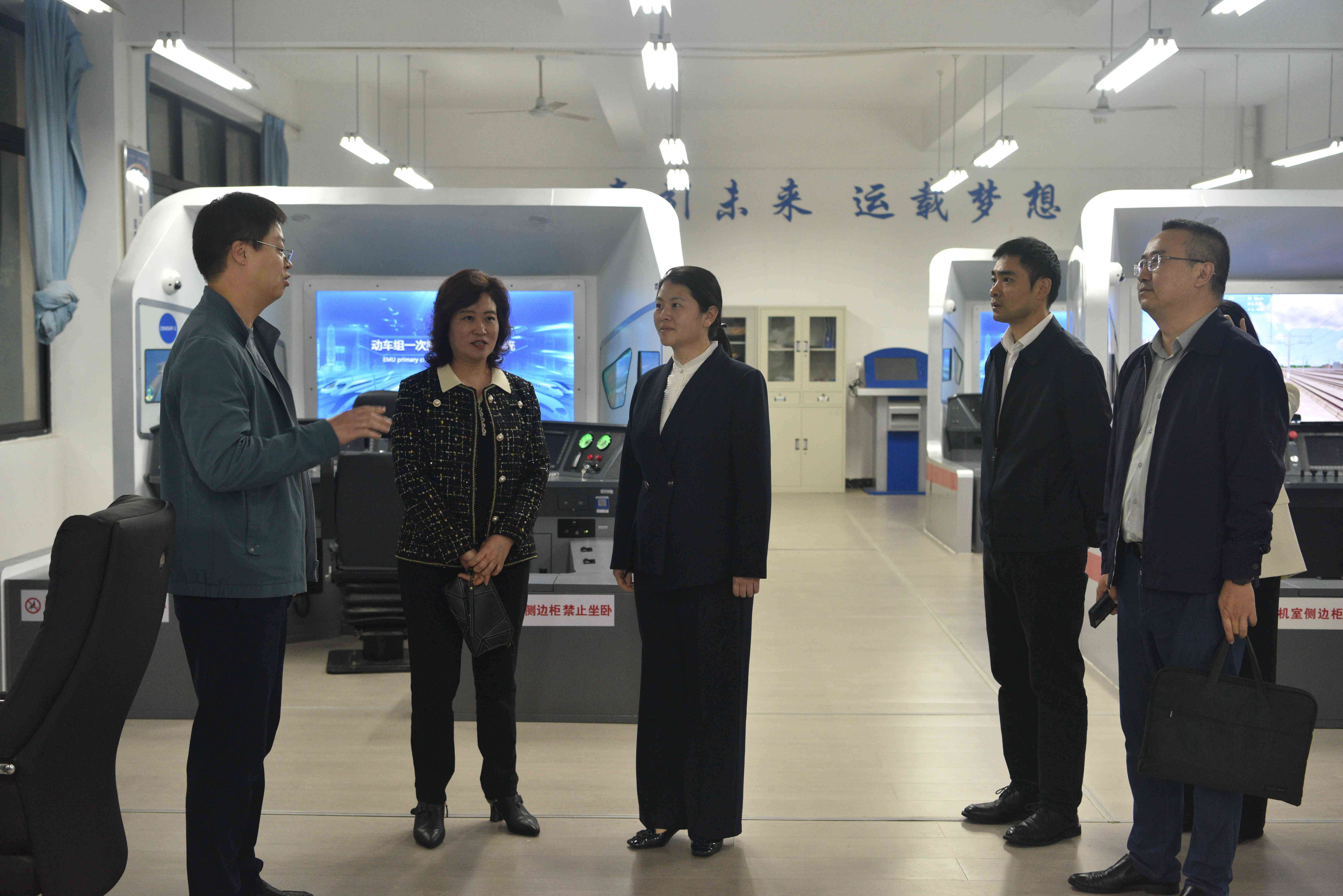 期间,赖芳陪同王一米一行参观了郫都区唐昌镇战旗村、学校铁道综合实训基地、城市轨道交通综合实训中心、动车组机械师实训室、复兴号模拟驾驶实训室,调研乡村振兴、学校建设和人才培养情况。