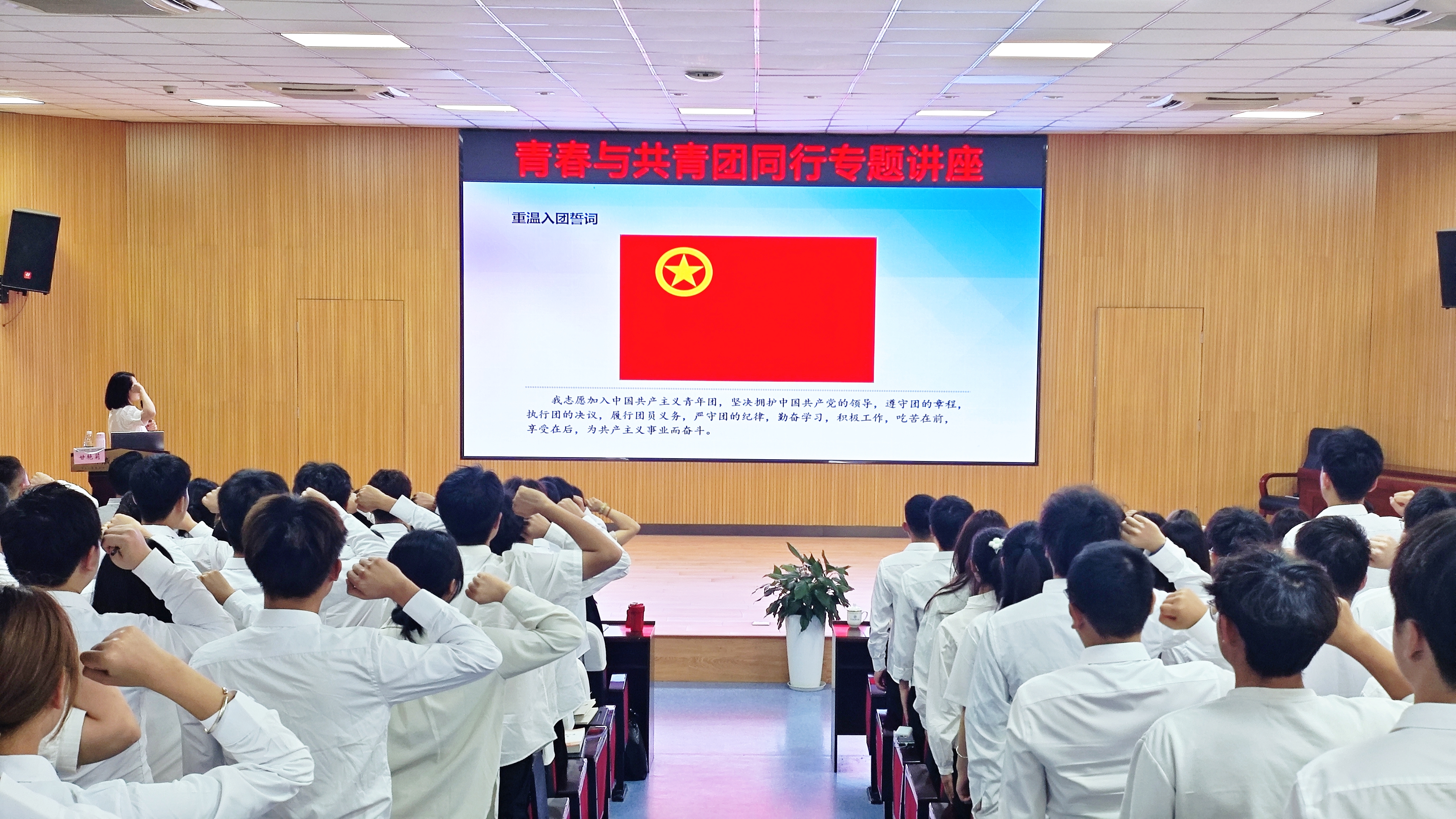 甘艳莉深入阐述了“团组织、团员、团干部”的内涵,带领同学们重温入团誓词,回顾入团时的庄严承诺,进一步坚定理想信念,增强对共青团组织的认同感和归属感。通过分享自身团学工作的丰富经历,甘艳莉号召团干部们要坚守共青团的初心使命和血脉基因,增强为青年服务的意识,多为青年计,少为自己谋,在工作中积极体现珍惜、担当和忘我的奉献精神,努力做到政治上坚定,学习上刻苦,工作中勤奋,作风上严实。