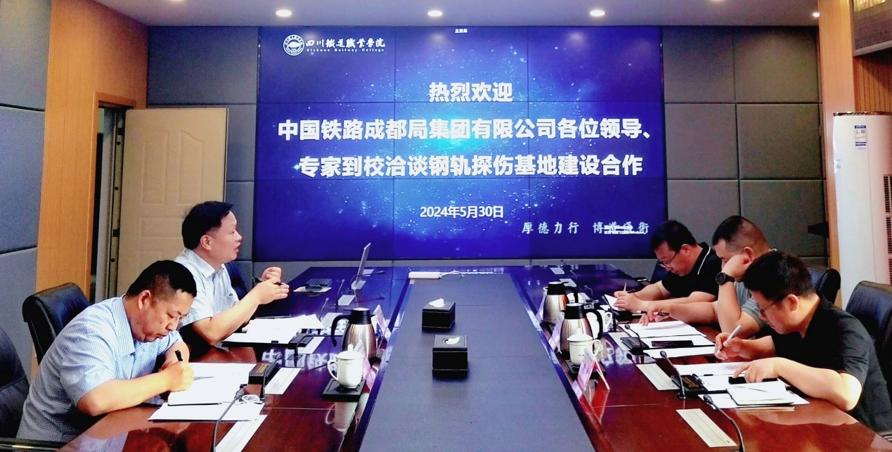 5月30日上午,中国铁路成都局集团有限公司职工培训部副部长刘明、工务部副部长吕元博、钢轨管理中心主任唐军一行来beat365洽谈钢轨探伤基地共建项目合作,会议在第五会议室进行,副校长黄恩兴、铁道工电学院院长王立参会。 会上,黄恩兴详细介绍了钢轨探伤基地建设的现状和未来规划。他表示,钢轨探伤基地应成为集员工培训、技能鉴定考试、学生日常教学、实训及技术技能研发于一体的综合性平台。在当前大数据、人工智能快速发展的背景下,基地的建设不仅要满足当前的实际需求,还要前瞻性地考虑未来铁路行业的发展趋势。同时,钢轨探伤基地的建成将惠及铁道工程、高速铁路综合维修技术、铁道供电、铁道机车等多个专业。他诚挚地希望中国铁路成都局集团有限公司能为基地建设提供宝贵的意见和建议,共同推动项目的顺利实施。 刘明对黄恩兴的提议表示高度赞同。他表示,中国铁路成都局集团有限公司与学校在此方面有着广泛的共识,双方的合作将有效解决当前职工培训和技能鉴定等现实问题,并为铁路行业的未来发展培养更多高素质人才。他表达了对双方合作的强烈意愿和信心。